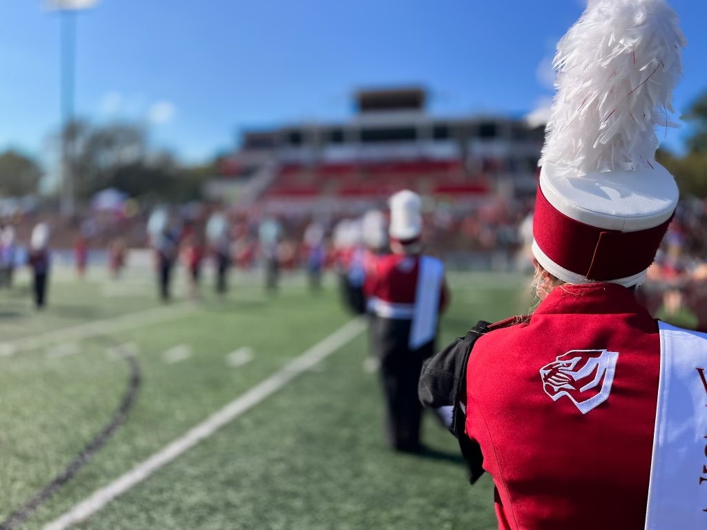 The West Alabama Marching Band (WAMB) performs at all UWA home football games, and travels as a full band to one away game per year. There are additional opportunities for a smaller group to travel to other away games. This ensemble is made up of woodwinds, brass, battery percussion, front ensemble, and auxiliaries (majorettes, color guard).