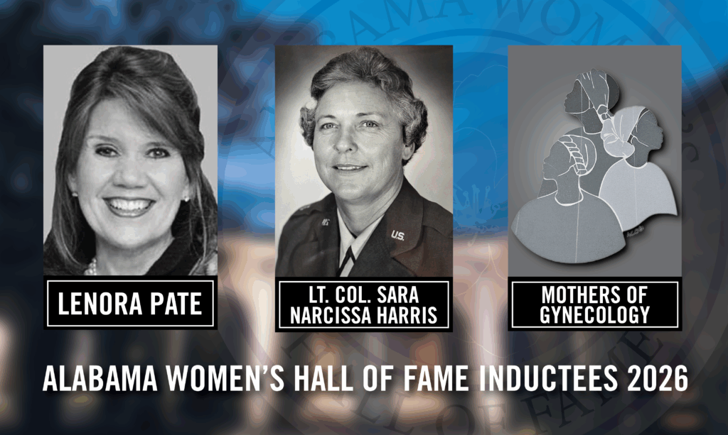 The Alabama Women’s Hall of Fame will induct its three newest members during a ceremony on Thursday, March 5, at 11:00 a.m. in the Bridges Auditorium of Wallace Hall on the campus of the University of West Alabama. Former attorney and advocate Lenora Pate, former Lt. Col. Sara Narcissa Harris, USAF (Ret.) and the collective known as the Mothers of Gynecology will be honored for their remarkable contributions to Alabama’s political, legal, military, and social history, marking pivotal milestones in their respective fields.
